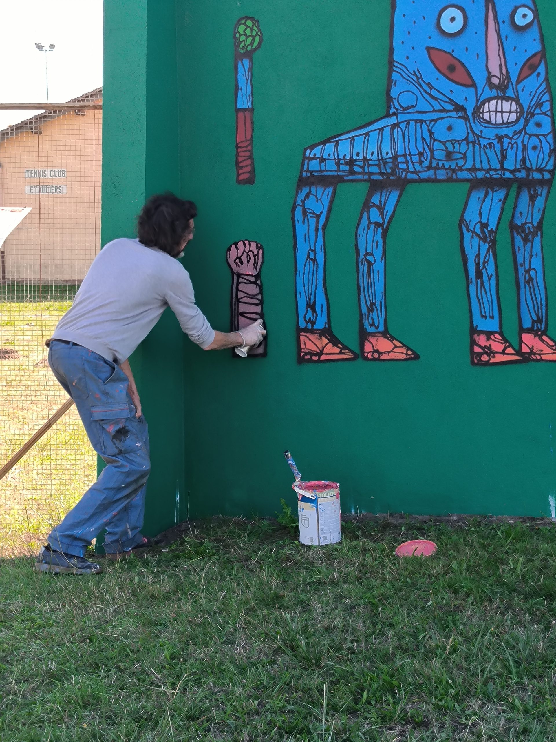 Son univers onirique au surréalisme post-moderne l’installe très vite parmi les street artistes les plus originaux? Des murs de Paris, ses créatures gagnent ceux d’autres villes et continents, au fil de voyages riches en rencontres et chocs esthétiques.