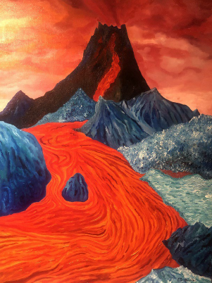 Ses peintures de grand format sont reconnaissables par leurs couleurs vives et chaudes mises en contraste avec des bleus profonds.