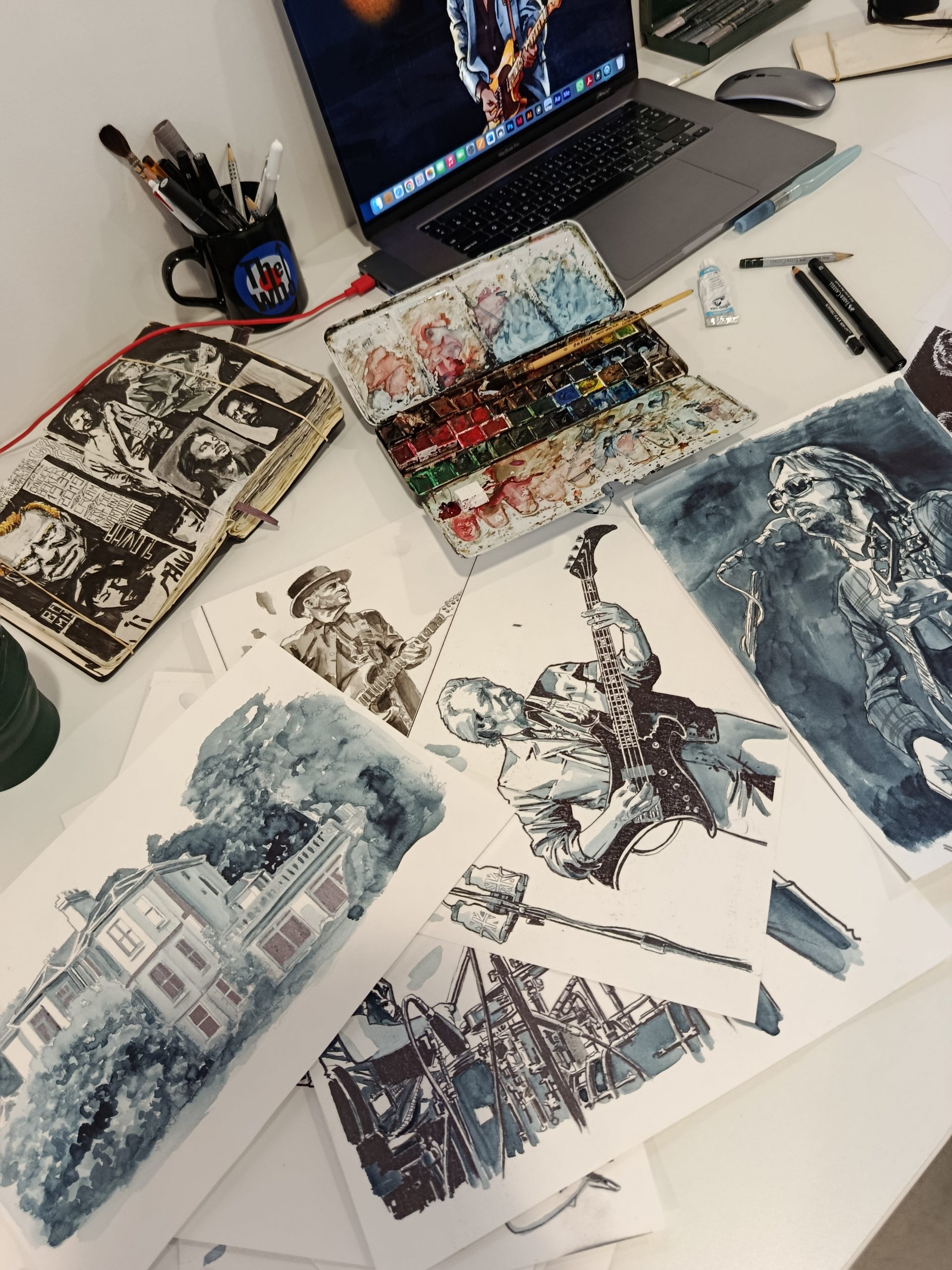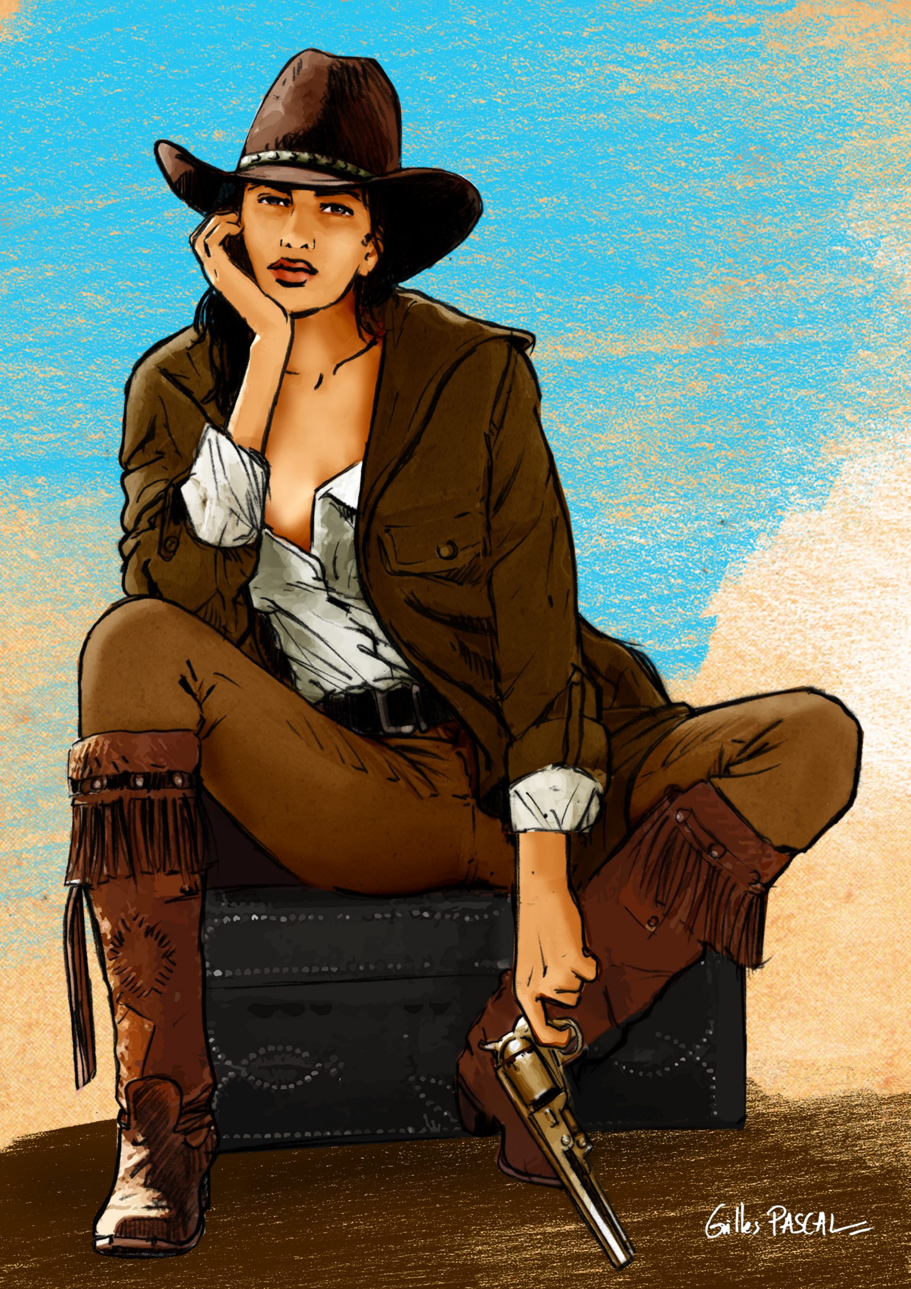 Plongez dans ses aquarelles, dessins, croquis, et découvrez ses univers captivants : BD western, BD rock, dessins presse et illustrations pour la télévision.