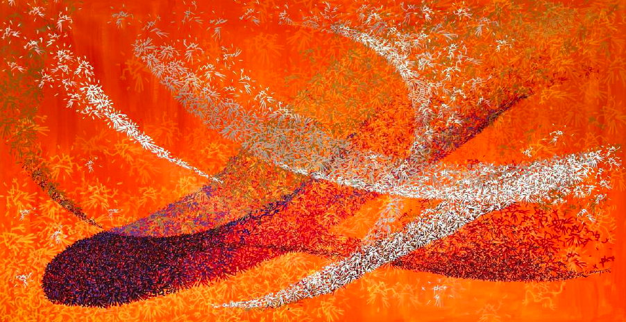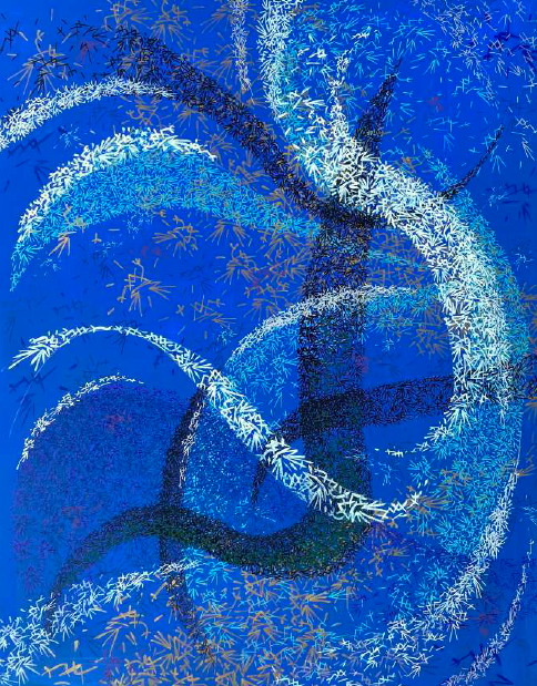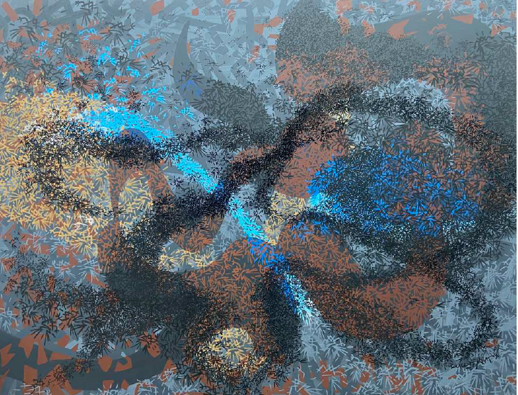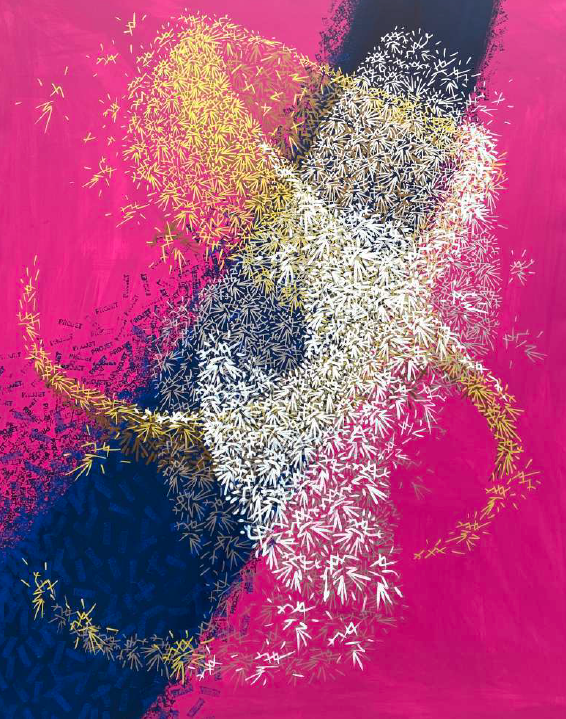 2020 > kilat s’inspire de la dynamique des vols d’étourneaux « les Murmurations » pour élaborer des œuvres mi-abstraites mi-figuratives réalisées par multiplication et superposition de milliers de petits personnages.