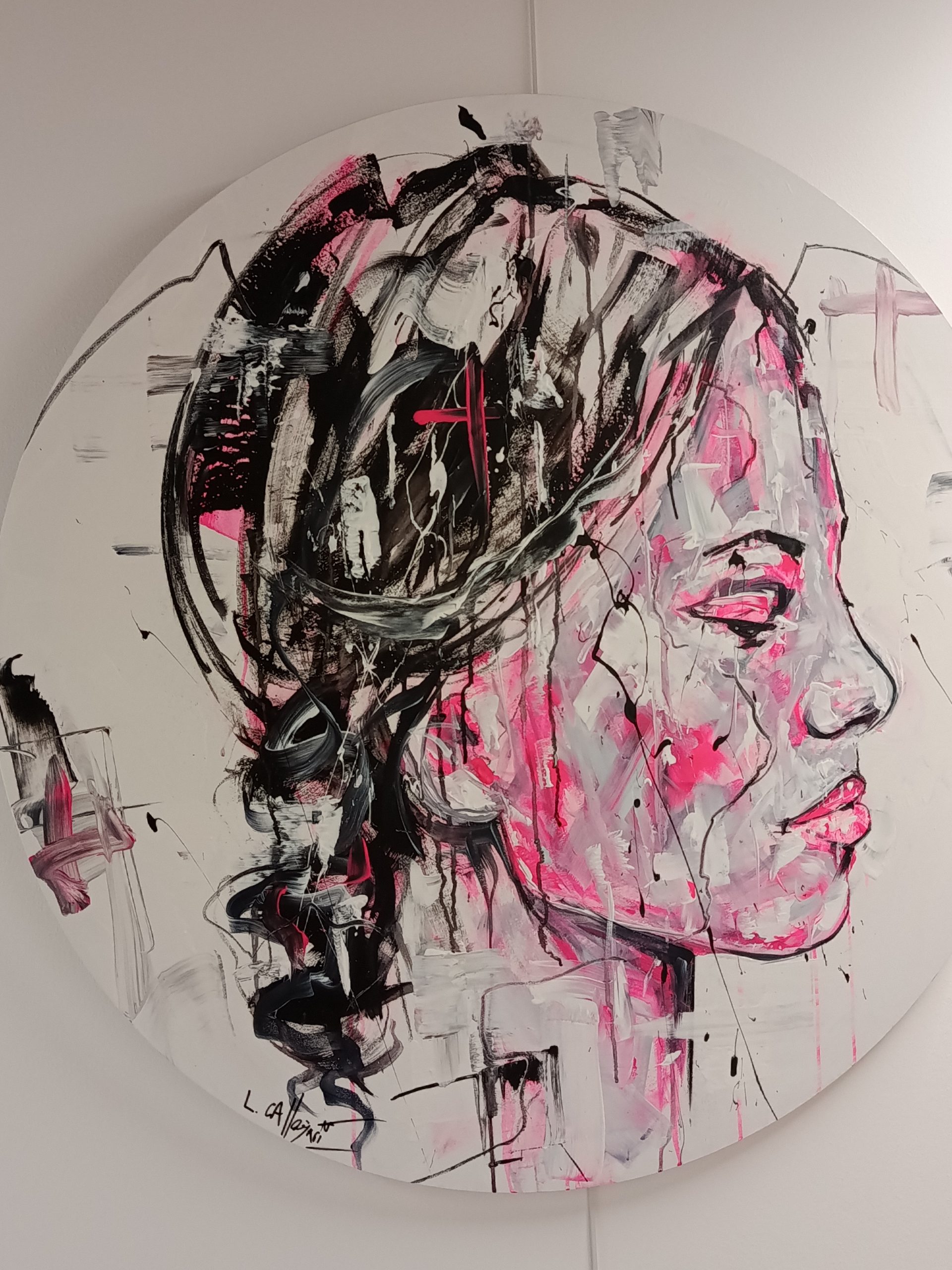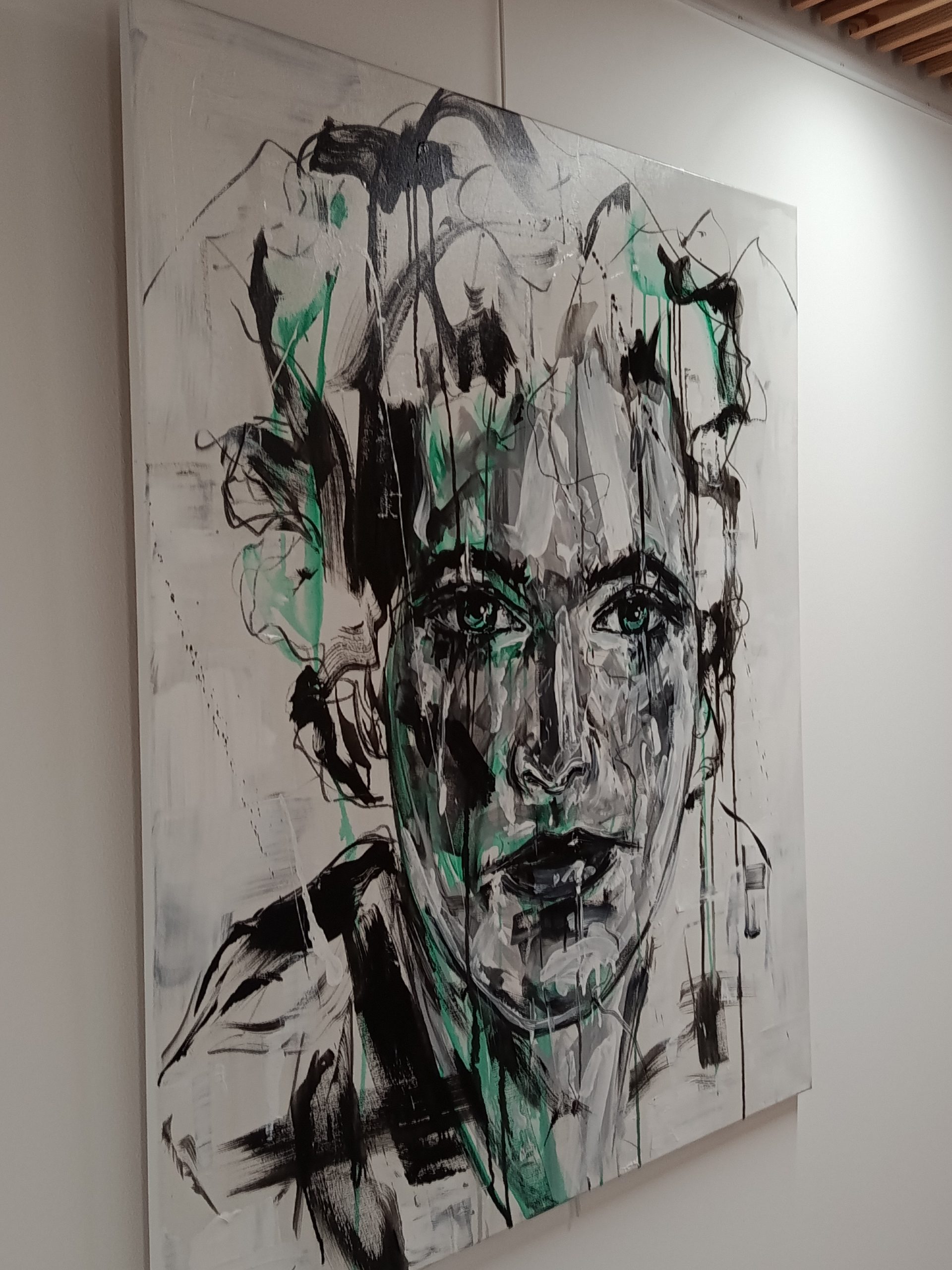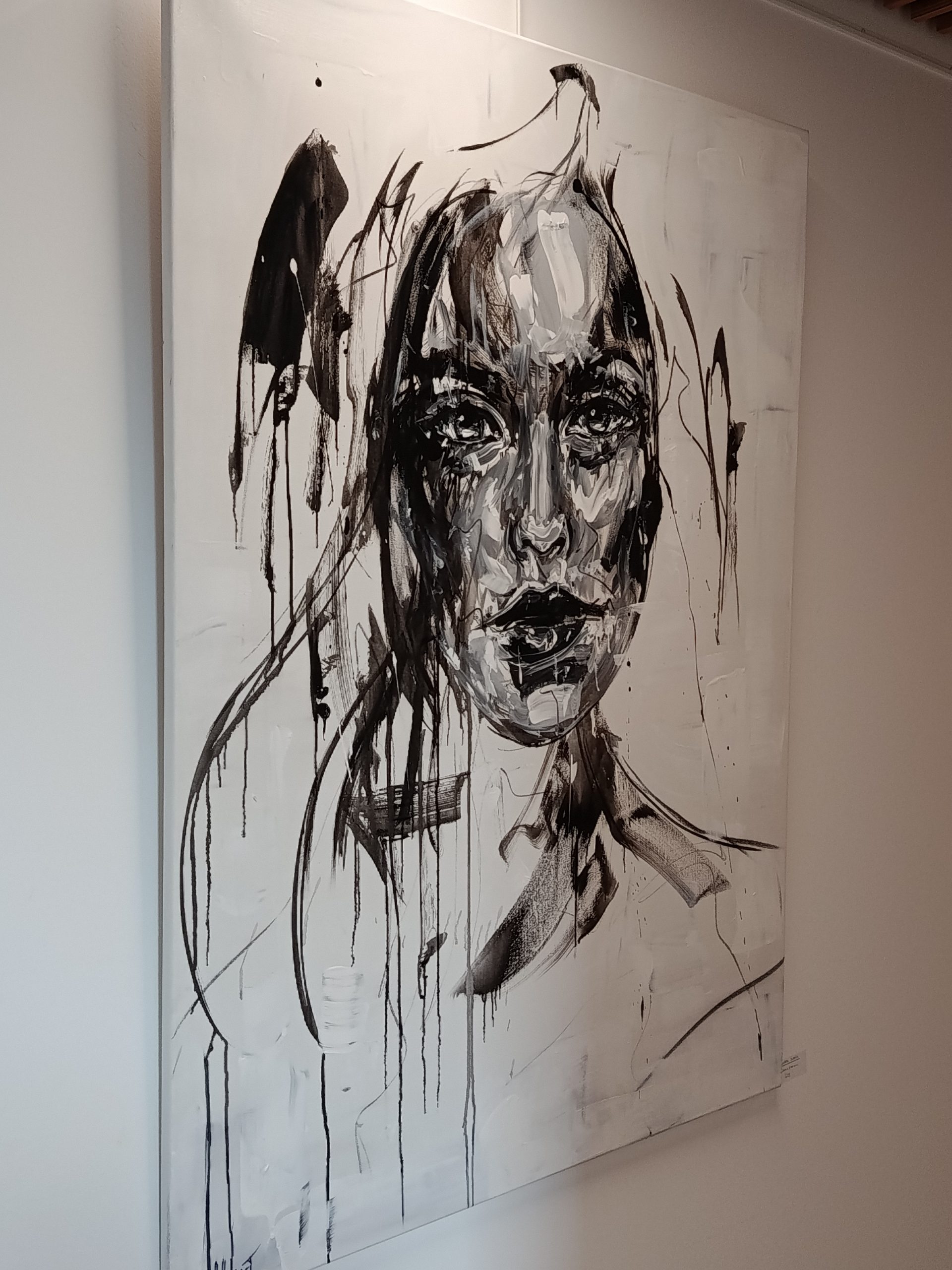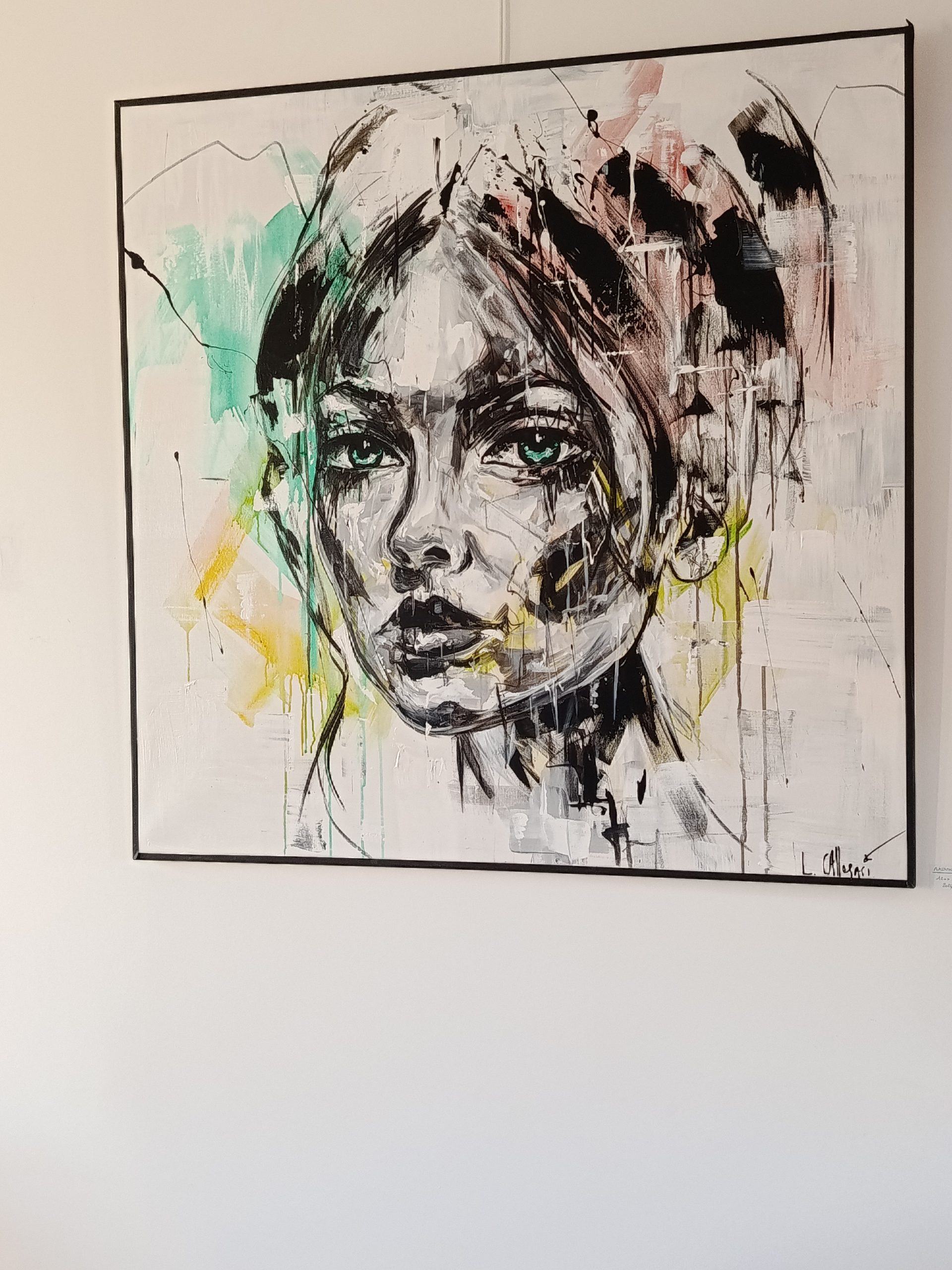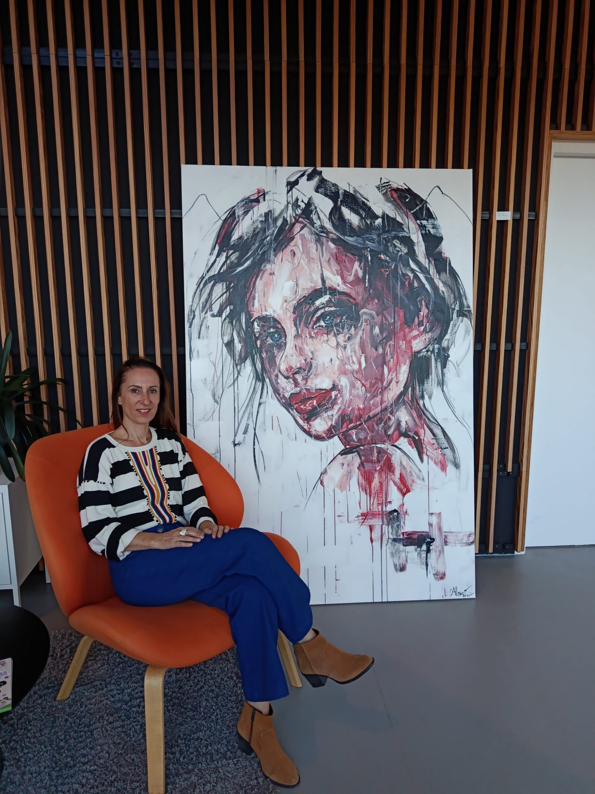 Peintre autodidacte, révélée il y a 12 ans, c’est dans le monde de l’histoire et de l’art qu’elle évolue depuis l’enfance. Le milieu de la création l’enthousiasme, mais ce n’est que 35 ans plus tard qu’elle s’y ouvre enfin et se déploie violemment et intimement.
