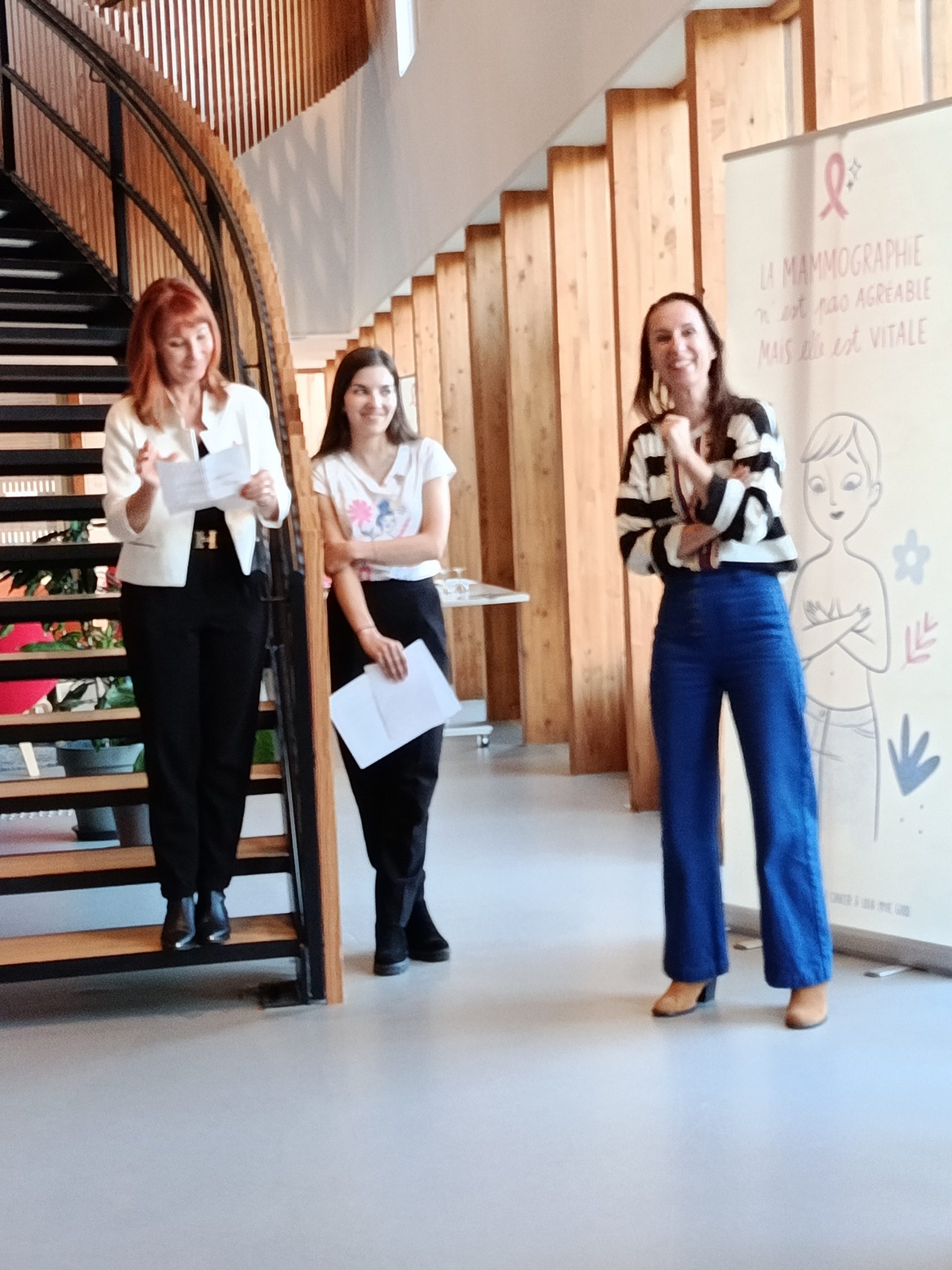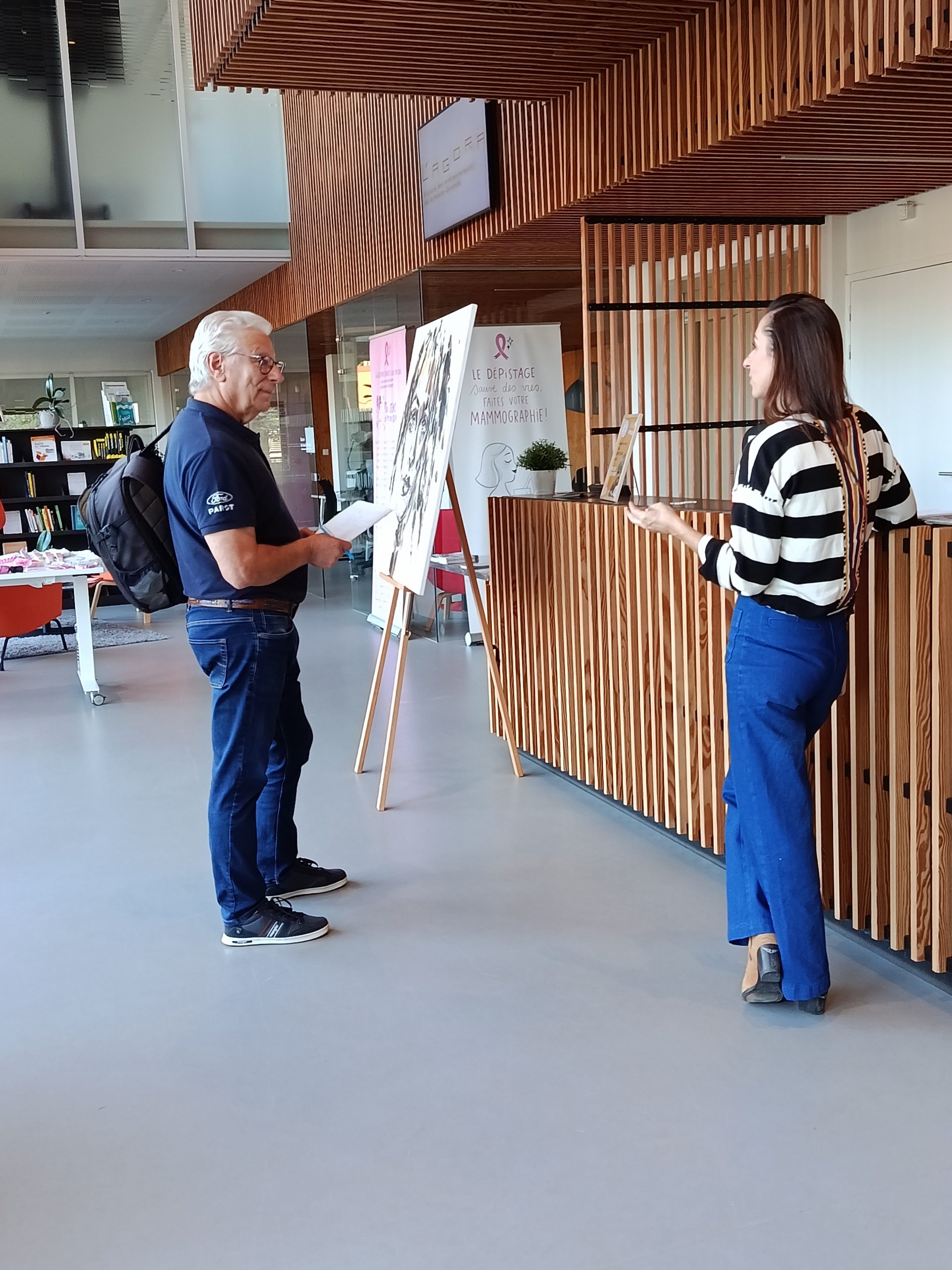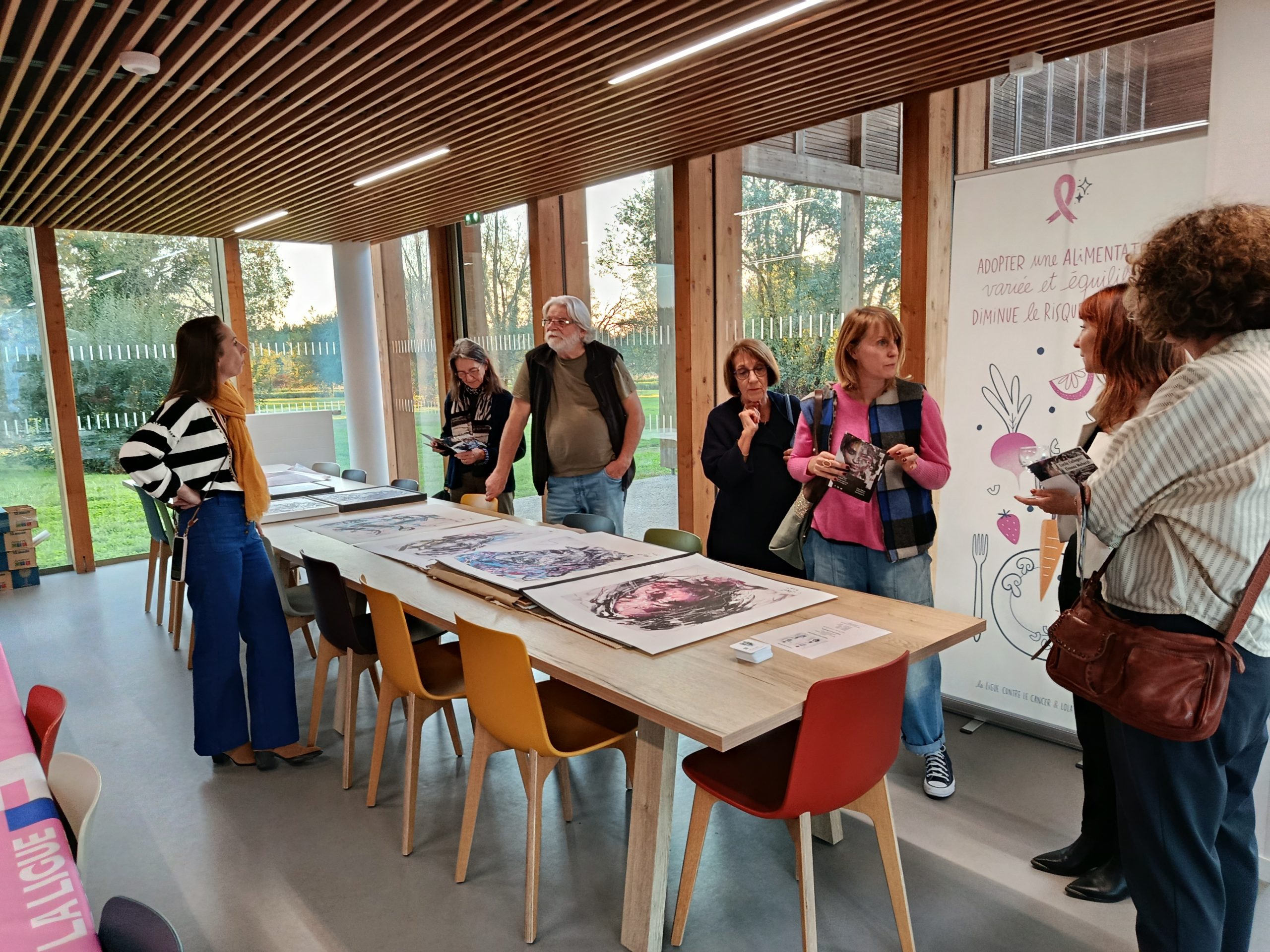 Lors du Vernissage de l’exposition à l’AGORA le 30 septembre, la ligue contre le cancer Gironde était présente aux côtés de Lucile Callegari pour une soirée dédiée aux femmes (mais pas que!), afin de sensibiliser le public et annoncer le programme des actions « Octobre rose » sur le territoire de la CCE.