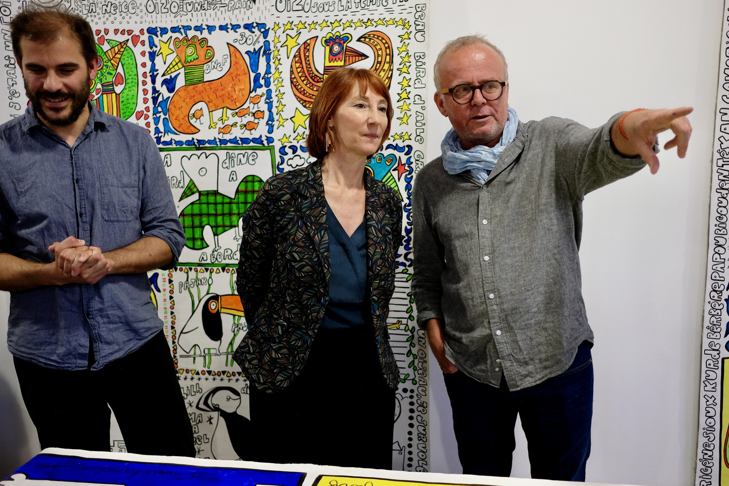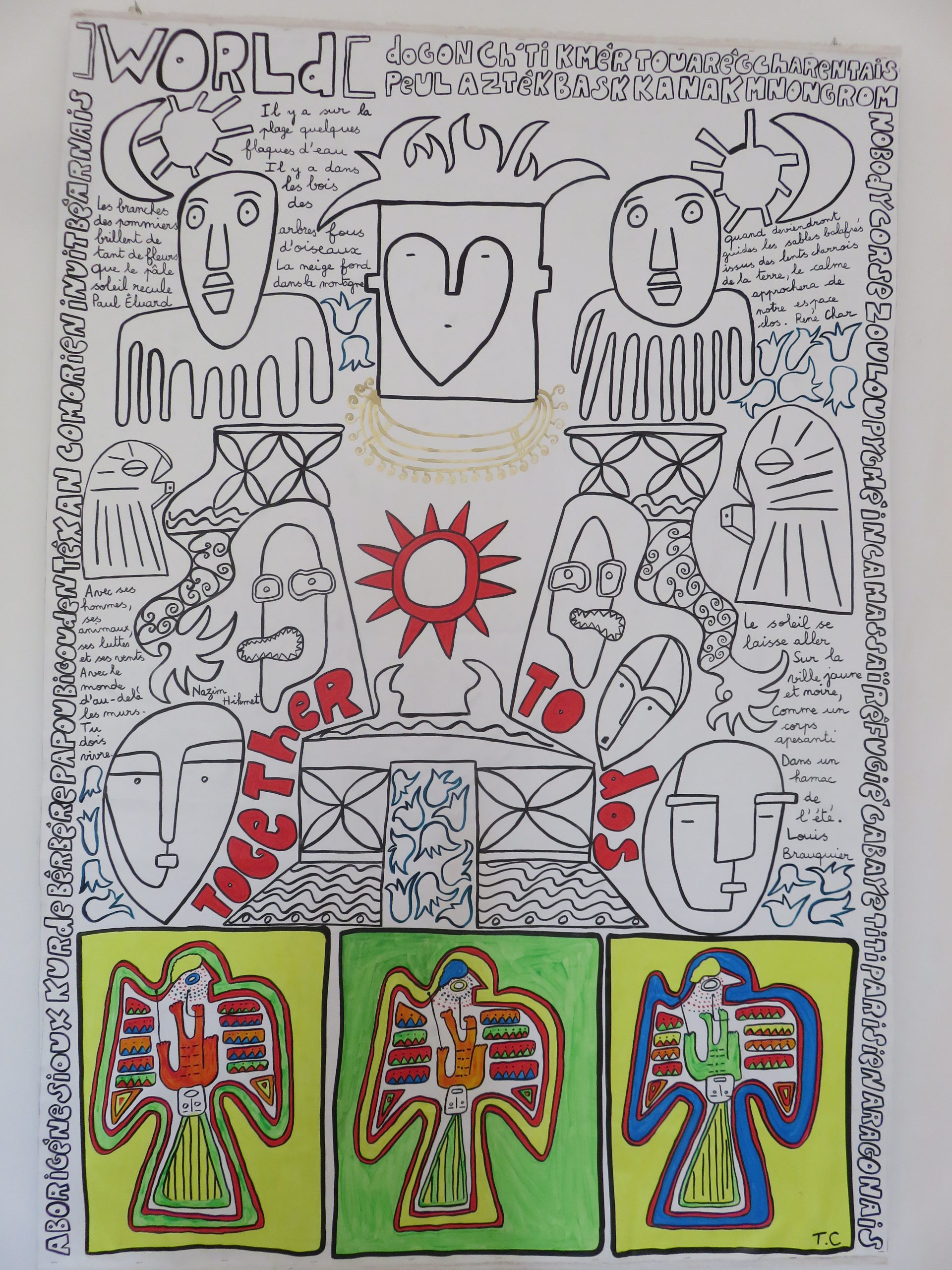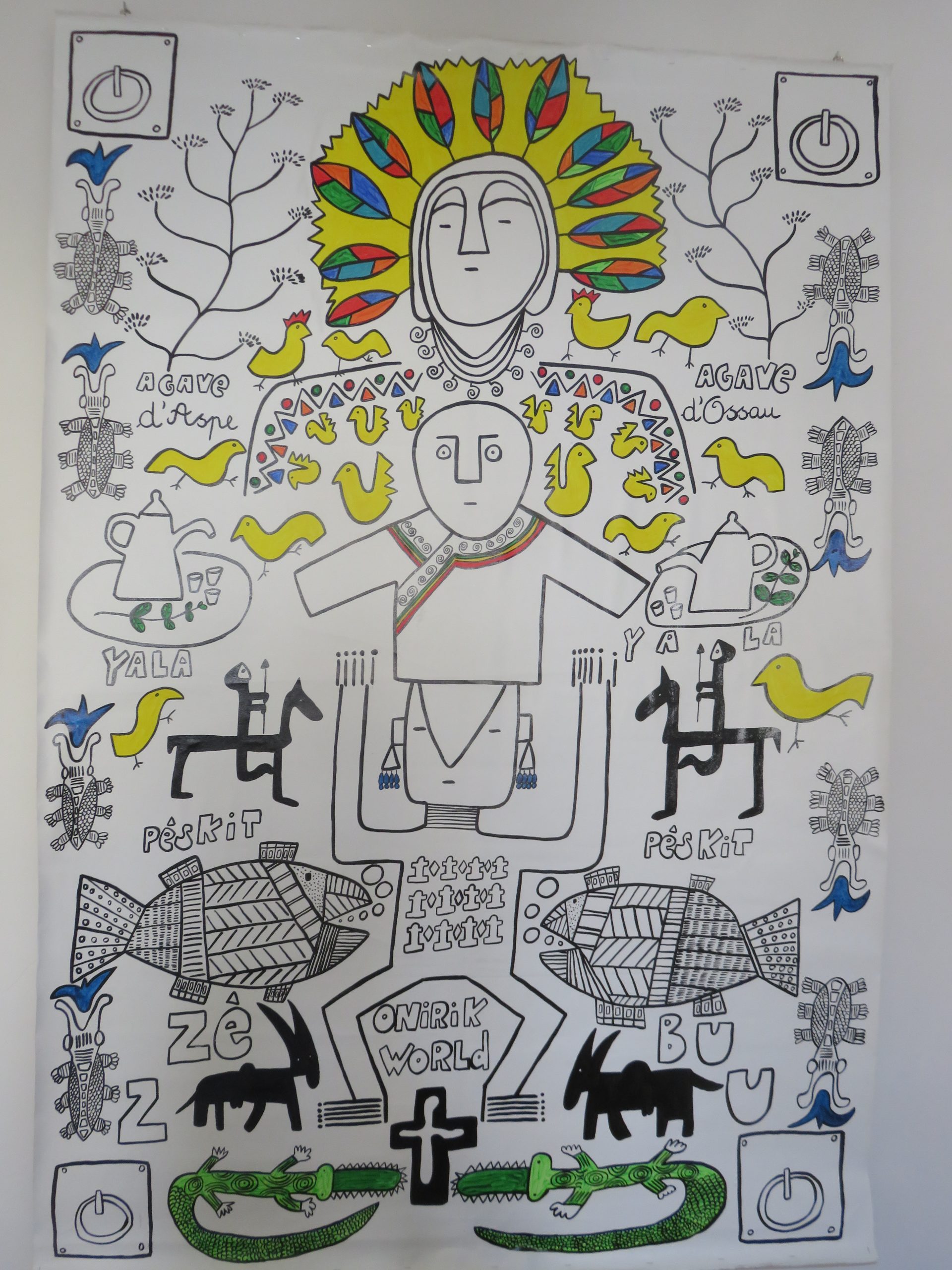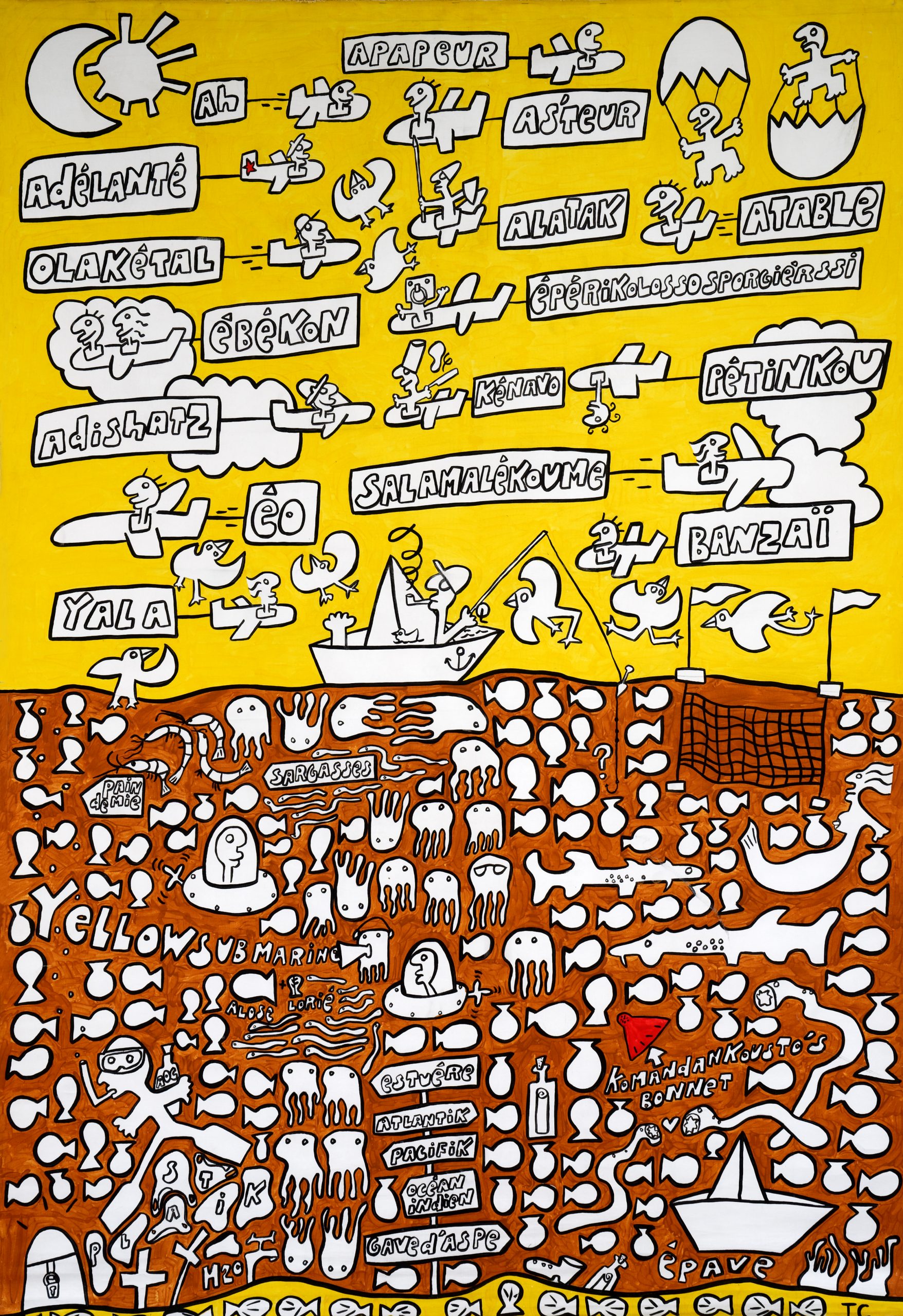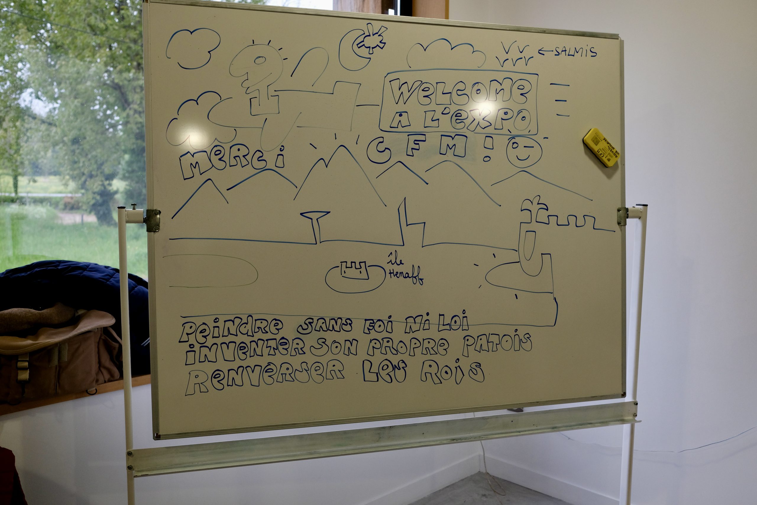 Autodidacte sans diktat, né en 1961, 3 enfants, il se définit comme instituteur/plouk/fabrikateur de [tablo] et [fotografeur]. Des séries, des personnages imbriqués, des mots, un questionnement graphique parfois poétique, humoristique, loufoque, automatique… Une recherche sur l’identité, des petits fragments de vie reconstitués, des souvenirs, des aspirations, des moments de bonheur tracés sur des rectangles de papier collés sur du carton ondulé ([tablo] porte-[manto]) ou sur des toiles XXL. Un travail comme un carnet de voyage de proximité, spontané.